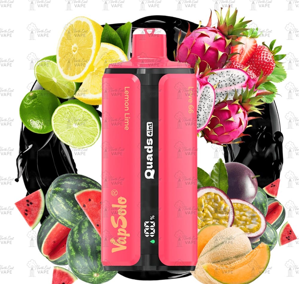 VapSolo Quads – #1 – Citrom és Lime & Dinnye ICE & Fekete Sárkánygyümölcs és Eper ICE & Love66