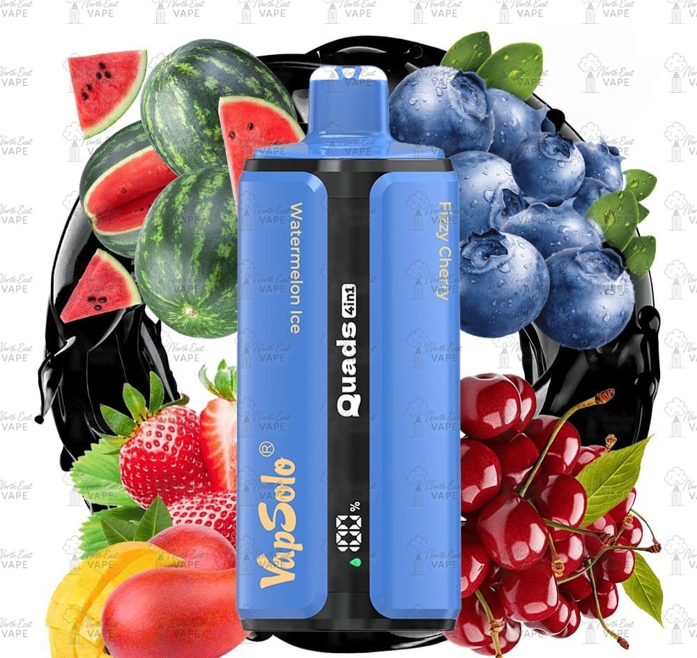 Fedezd fel a VAPSOLO QUADS 80K eldobható vape új generációját, amely a prémium minőséget és a kényelem határait feszegeti! A készülék különlegessége, hogy 4 íz található benne egyetlen eszközben, így kedved szerint válthatsz köztük – például a frissítő Watermelon Ice, a gyümölcsösen édes Strawberry Mango, a karakteres Blueberry Ice vagy a fanyar Fizzy Cherry között.